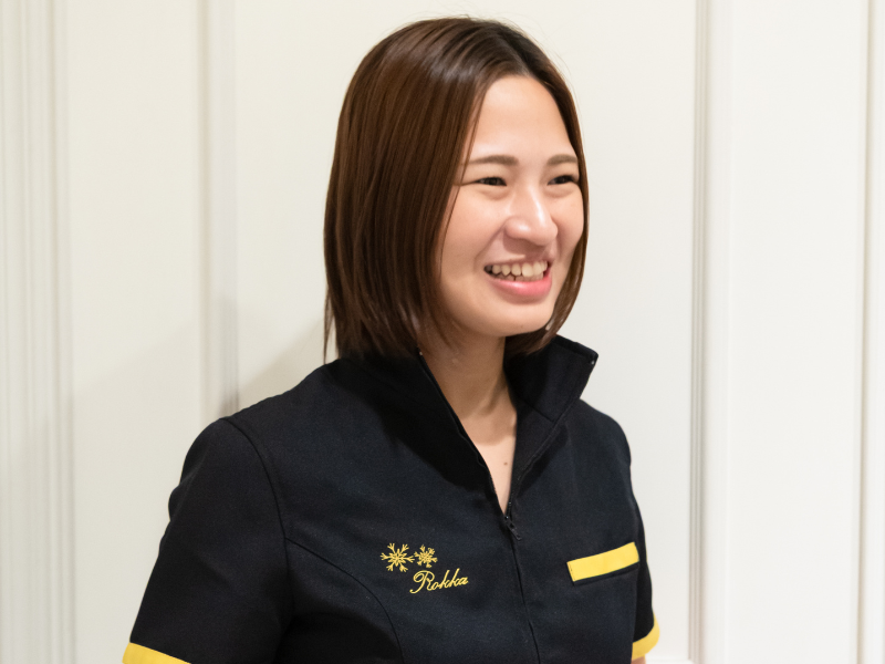 当初、柔道整復師として外傷やトレーナー活動を目指していましたが、この男性が多い業界で女性ならではの強みを活かしたいと考えた時に、六花の提供する美容との両立を知り、「ここしかない」と確信し志望しました。